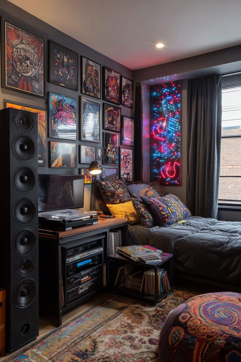 Surround your musical display with posters of your favorite artists, creating shrine-like walls dedicated to the musicians who understood your soul.