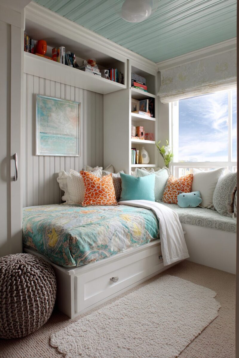 Choose a platform bed with steps that included additional storage cubbies, creating a stairway to dreamland that maximized every inch of vertical space.