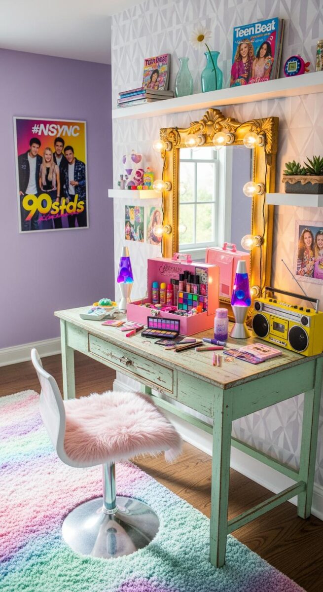 Teen bedrooms in the 90s weren’t complete without a vanity that doubled as a spot to sit and take a moment for yourself, and I finally have the setup of my teenage dreams.