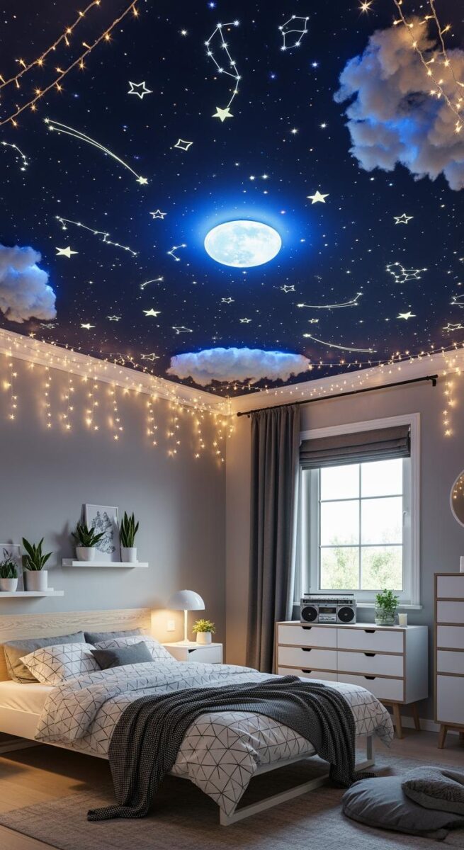 String lights in a starry pattern also give that celestial vibe without being too literal.
