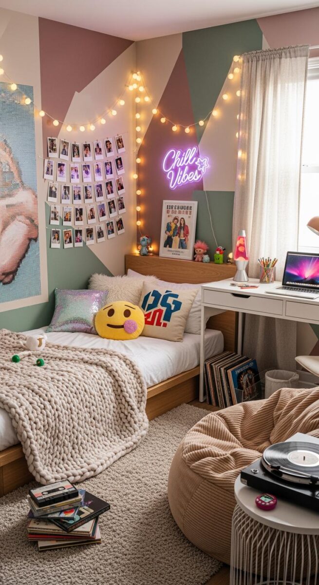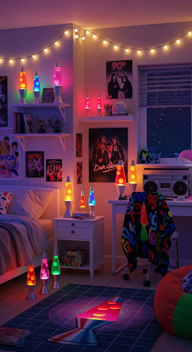 The key is layering your lighting—overhead light for daytime, lava lamps and string lights for evening, and those glow stars for when you’re ready to drift off.