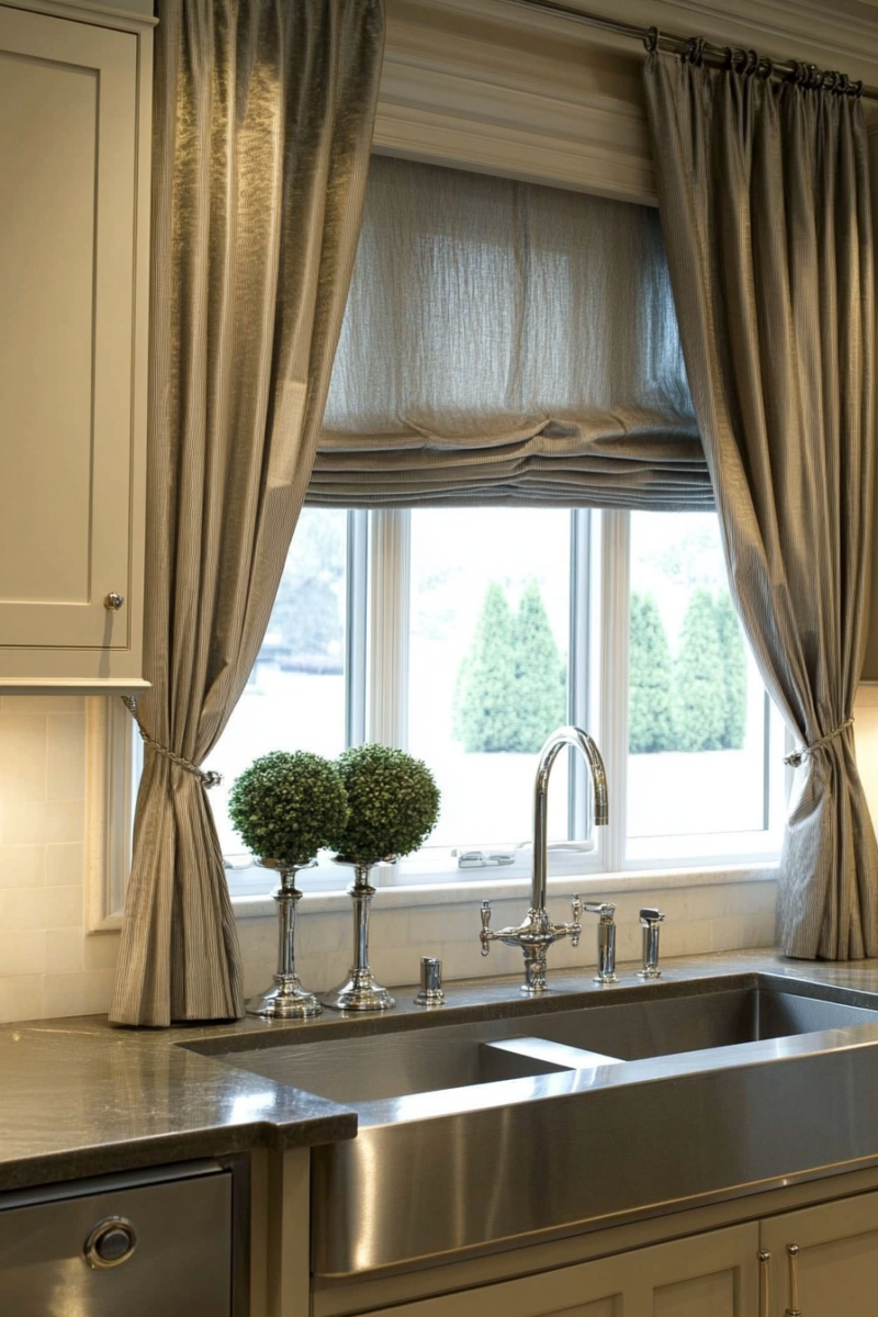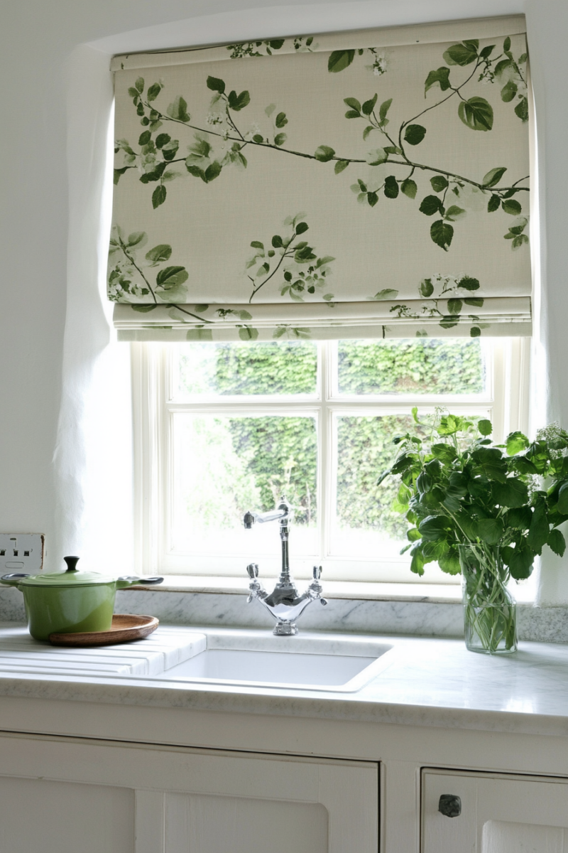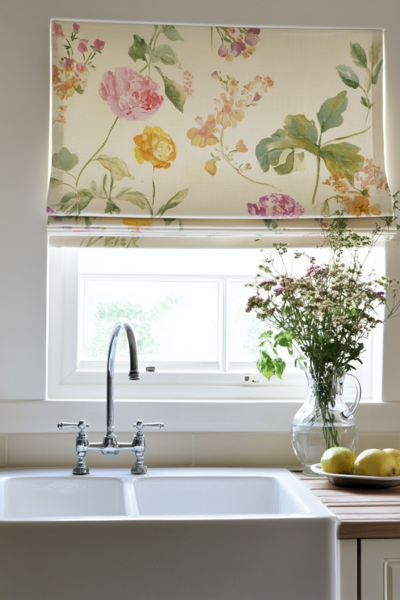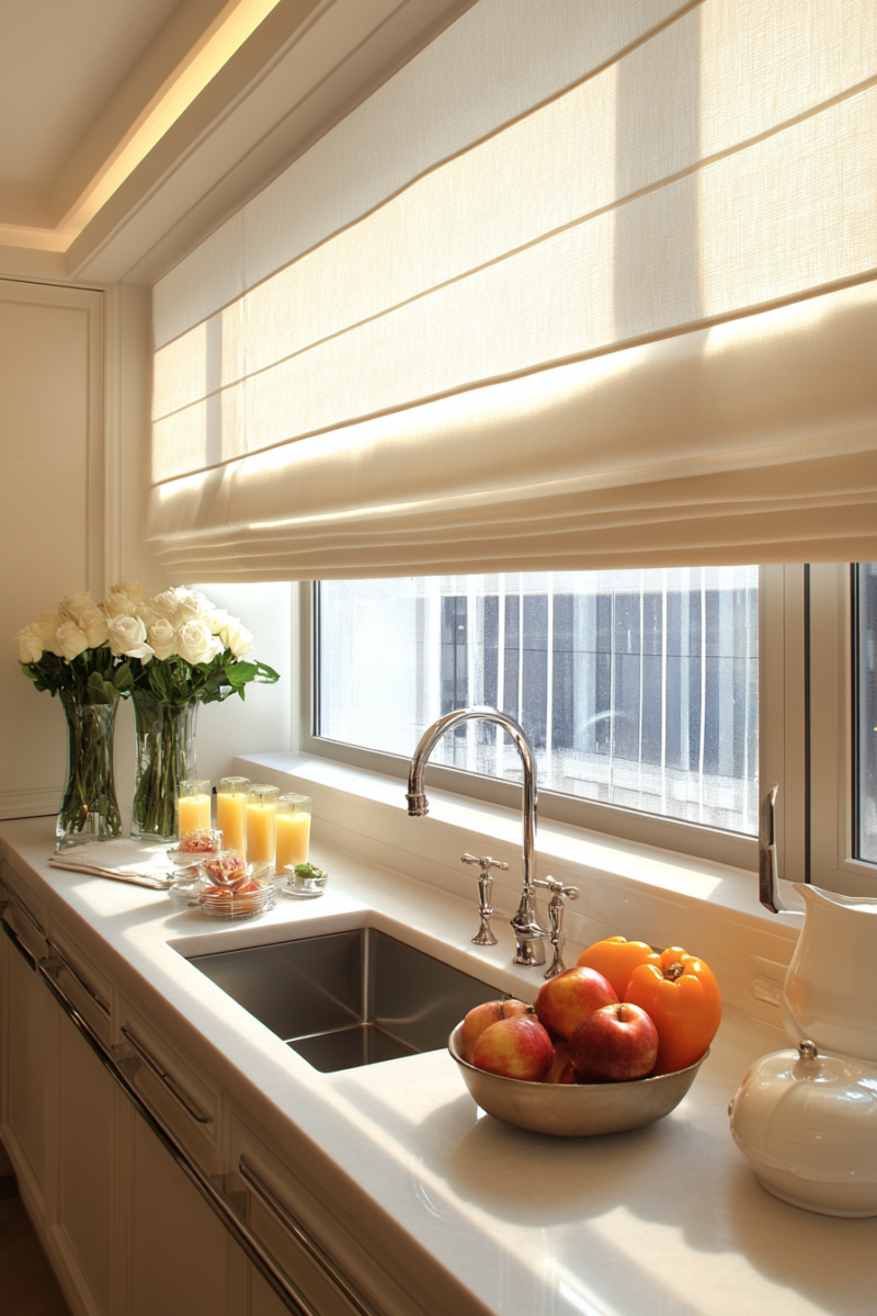 Roman shades are an excellent choice for adding a polished, streamlined touch to your kitchen while keeping practicality in mind.