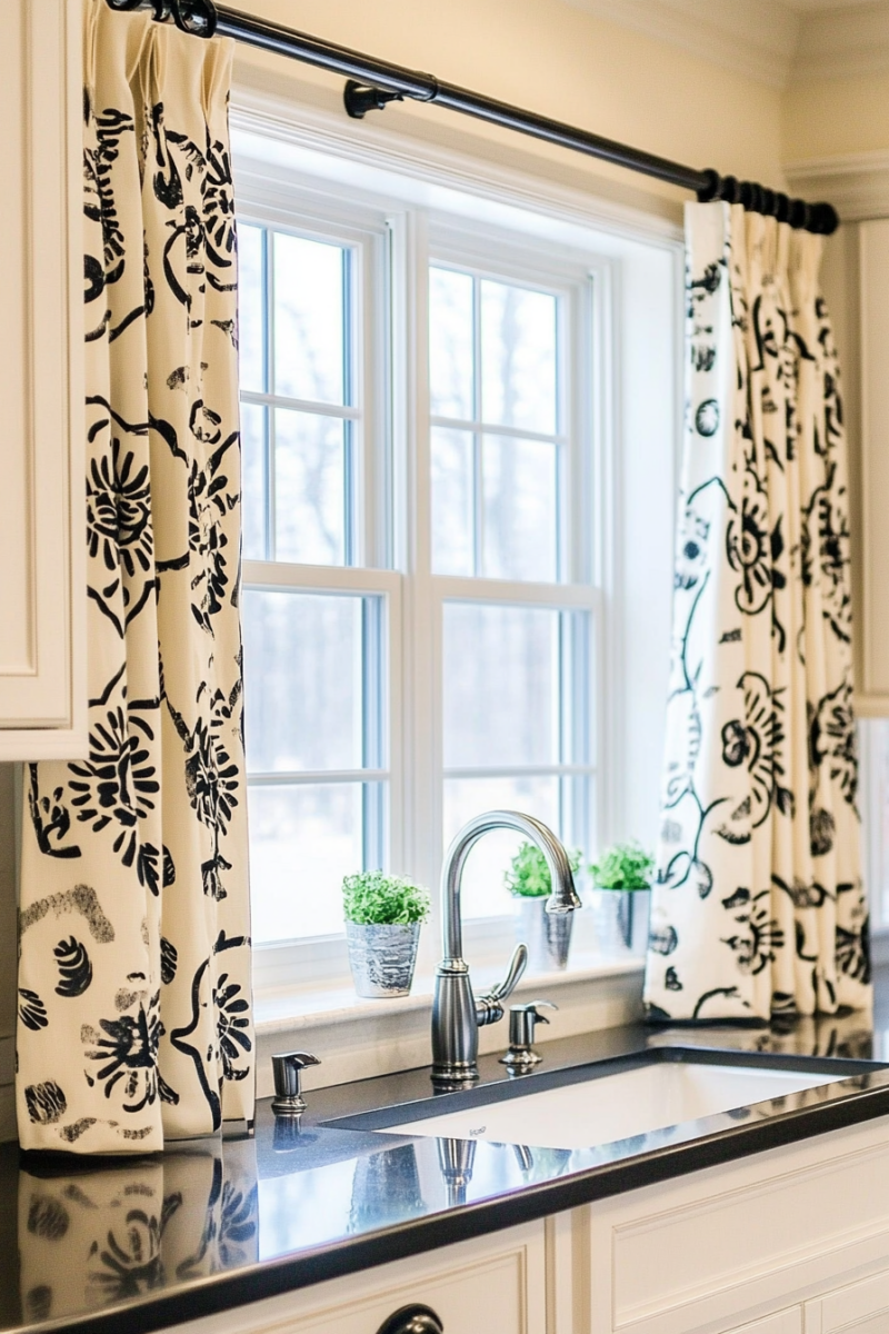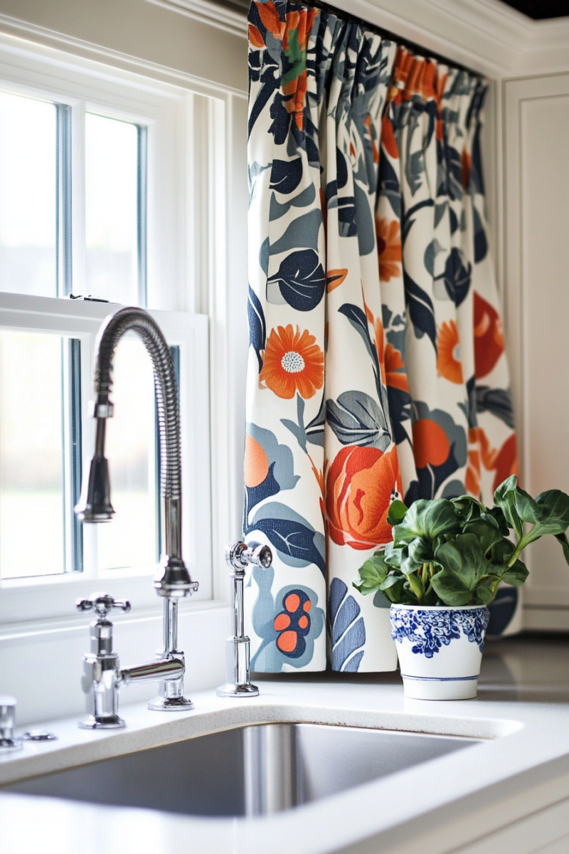Sometimes, your kitchen just needs a pop of personality, and patterned curtains are the way to go.