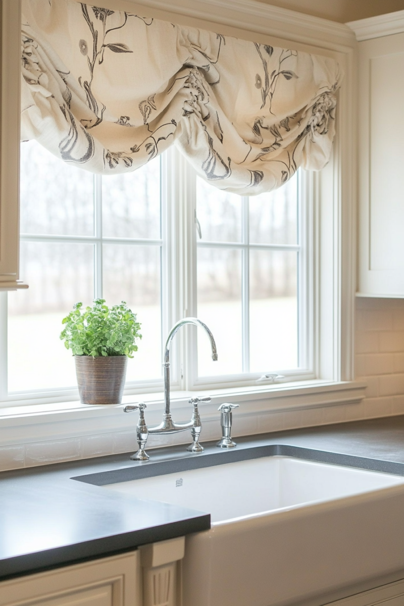Valances are a fantastic option for anyone who wants a low-maintenance, high-style solution for their above-the-sink window.