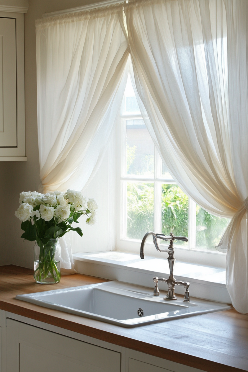 These lightweight, translucent curtains add a layer of elegance while maintaining that bright, open feel in your kitchen.