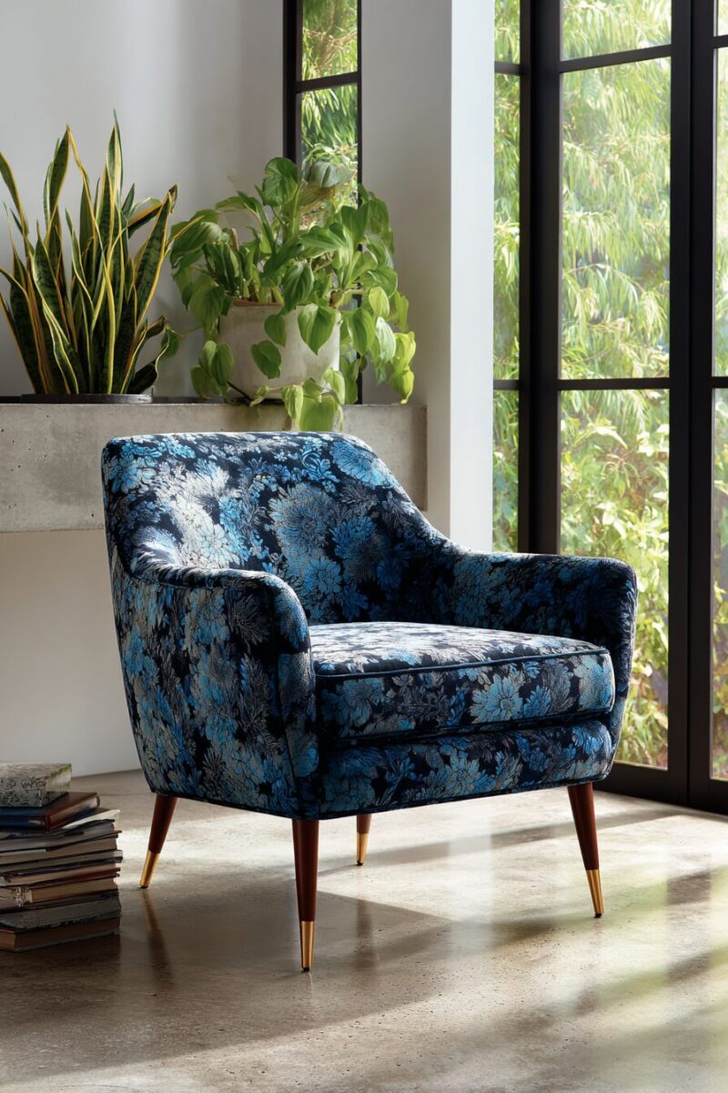 Your statement chair should relate to your overall design scheme through at least one connecting element—a color that appears elsewhere or a shape that echoes other furniture.