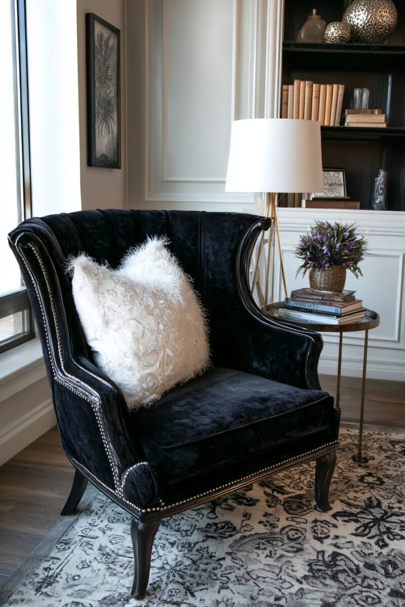 Remember that negative space around your chair is an accessory itself—resist the urge to fill every inch with objects.