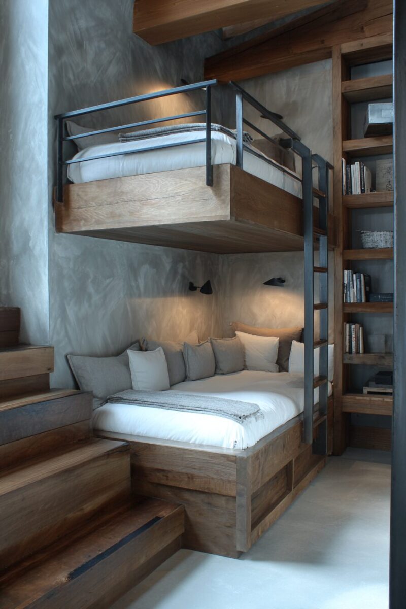 Picture walking into a space that screams urban sophistication – that’s exactly what an industrial loft-style bunk bed delivers.