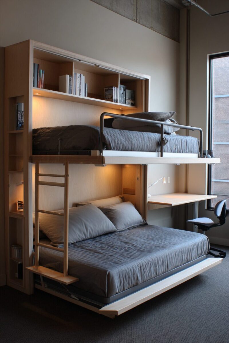 Imagine having a complete bedroom that disappears into your wall at the touch of a button – that’s the magic of a Murphy-style bunk bed system.