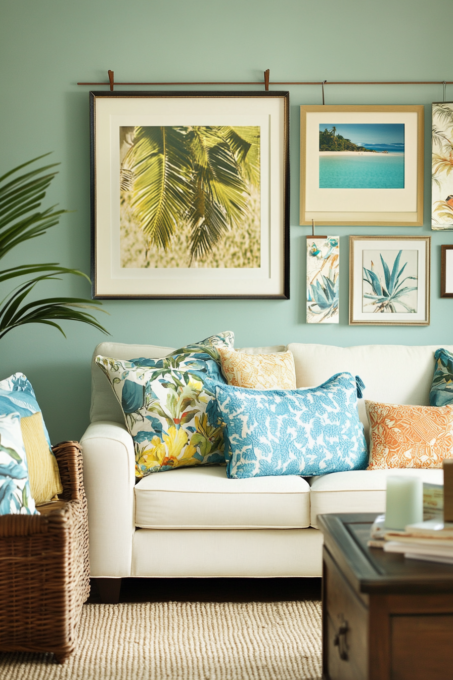 When possible, opt for frameless prints, photos and canvases that are easier to swap out.