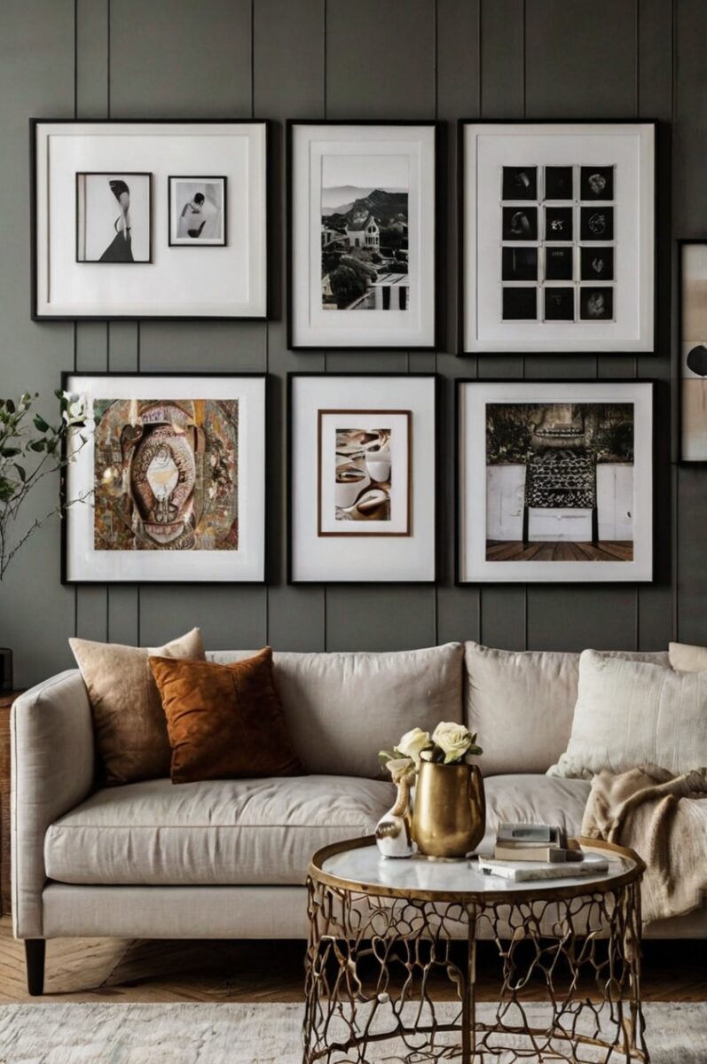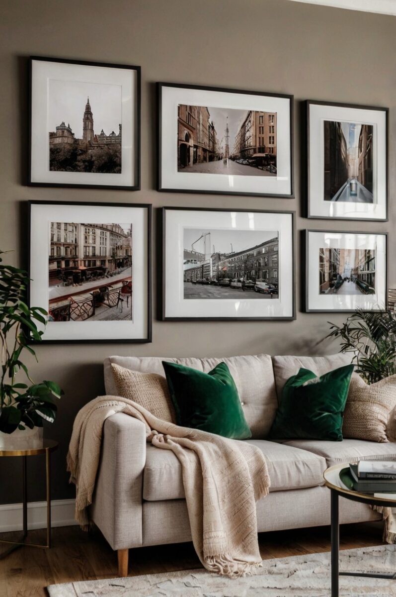 The key to achieving balance involves varying frame sizes while maintaining some consistent elements, whether that’s matching frames, similar color palettes, or complementary subject matter.