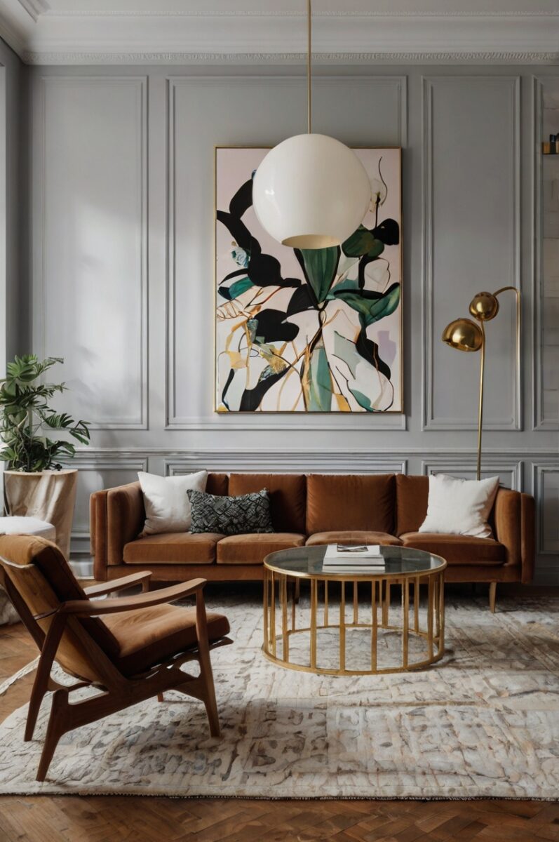 You can use contemporary art to bridge the gap between vintage furniture and modern architecture, creating visual connections that make everything feel intentional.