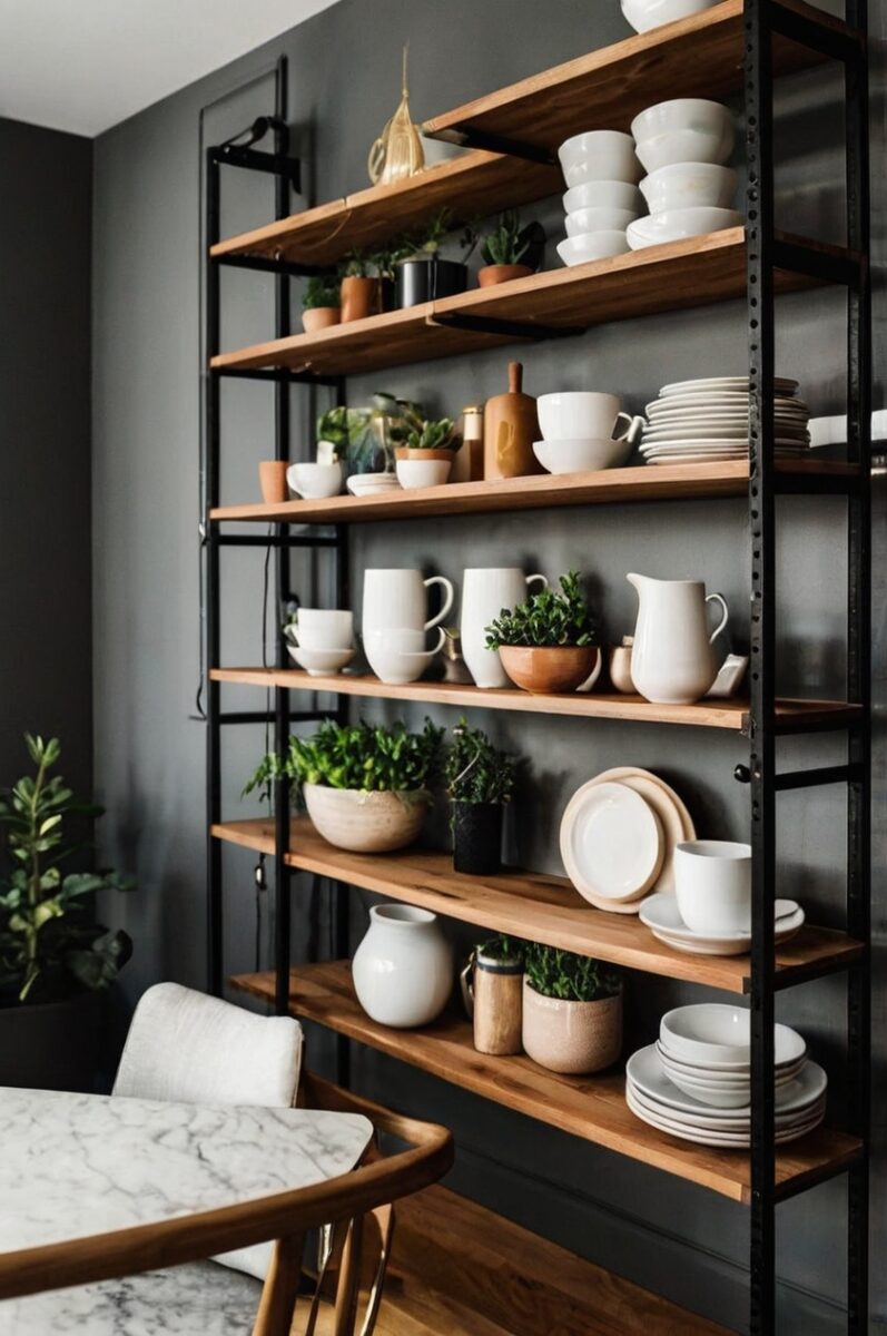 Open shelving transforms functional storage into display opportunities that make your everyday items look intentionally curated rather than accidentally exposed.