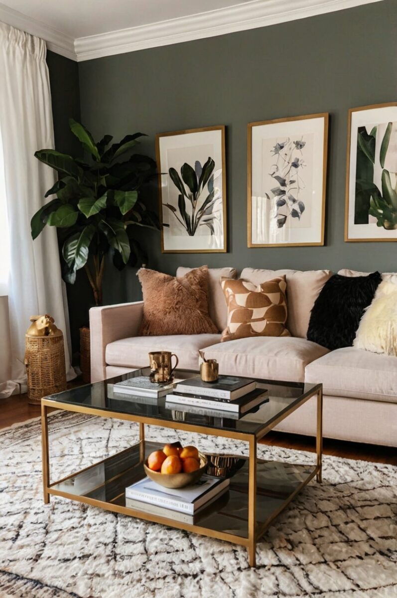 The secret to a professional-looking gallery wall lies in planning your layout on the floor before making a single nail hole in your rental wall.