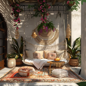 Add side tables for drinks, lamps for light, and throw blankets for chilly nights.