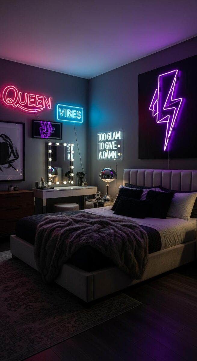 A really cool way to help create that baddie mood is to utilize neon and LEDs—and they’re customizable so you can switch up the color.