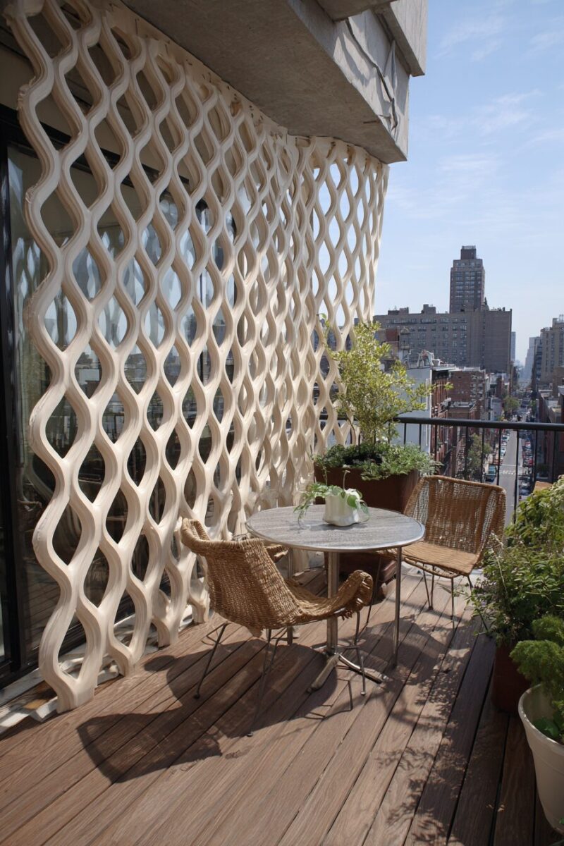 You can attach lattice panels directly to balcony railings or mount them as freestanding screens using weighted planters as bases.