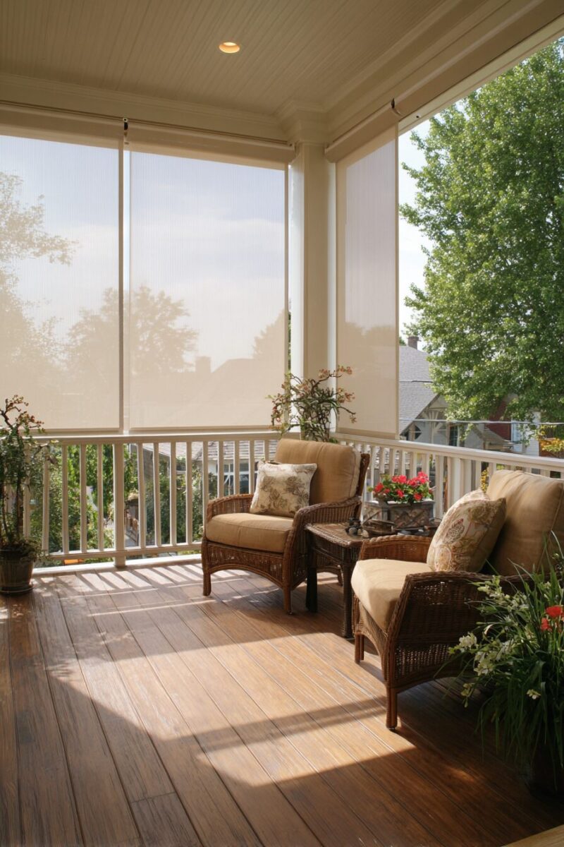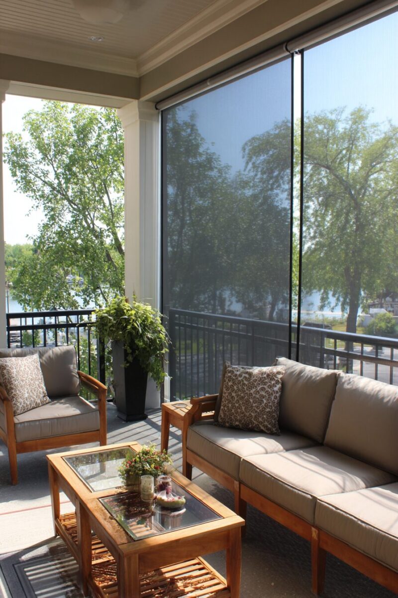 Motorized retractable screens offer the ultimate in privacy convenience, extending or retracting with the push of a button to instantly transform your balcony’s openness level.