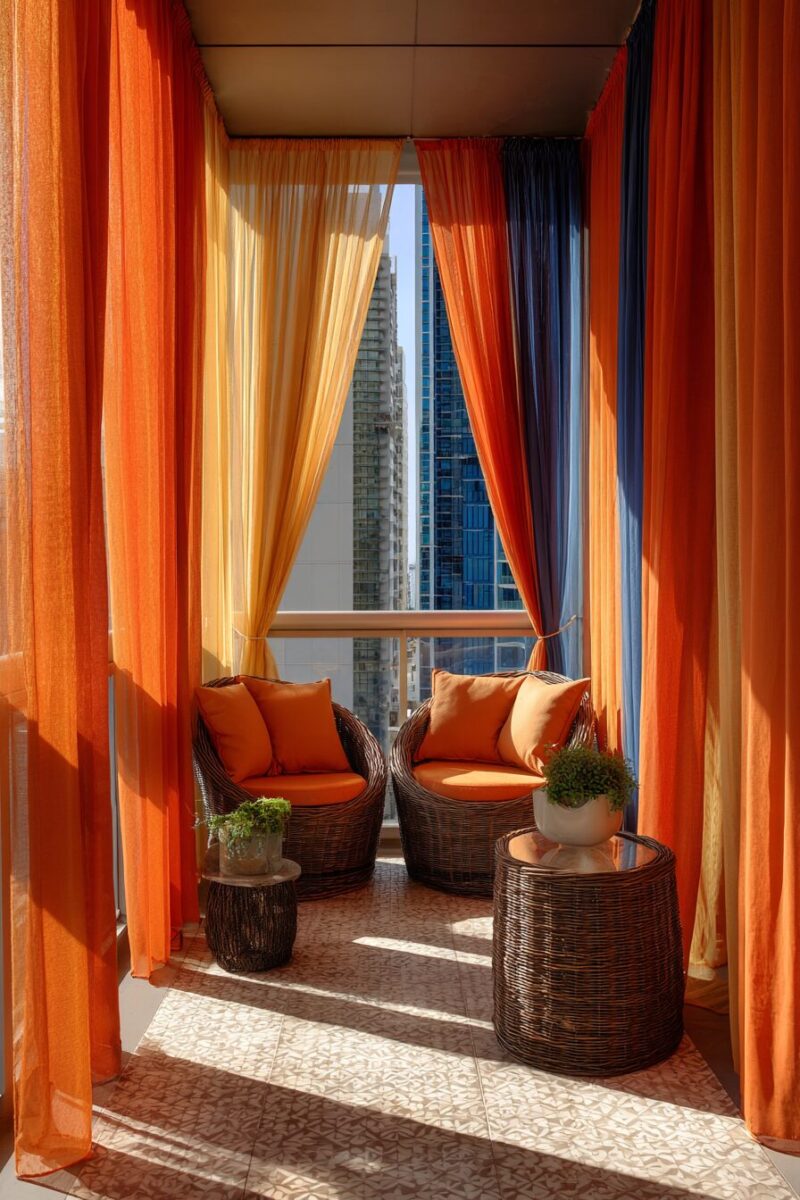 You’ll love how curtains can define different zones on larger balconies, creating separate areas for dining, lounging, or gardening.