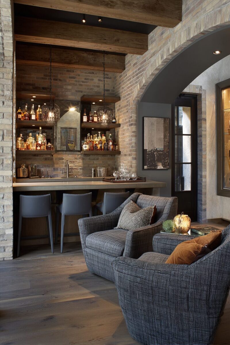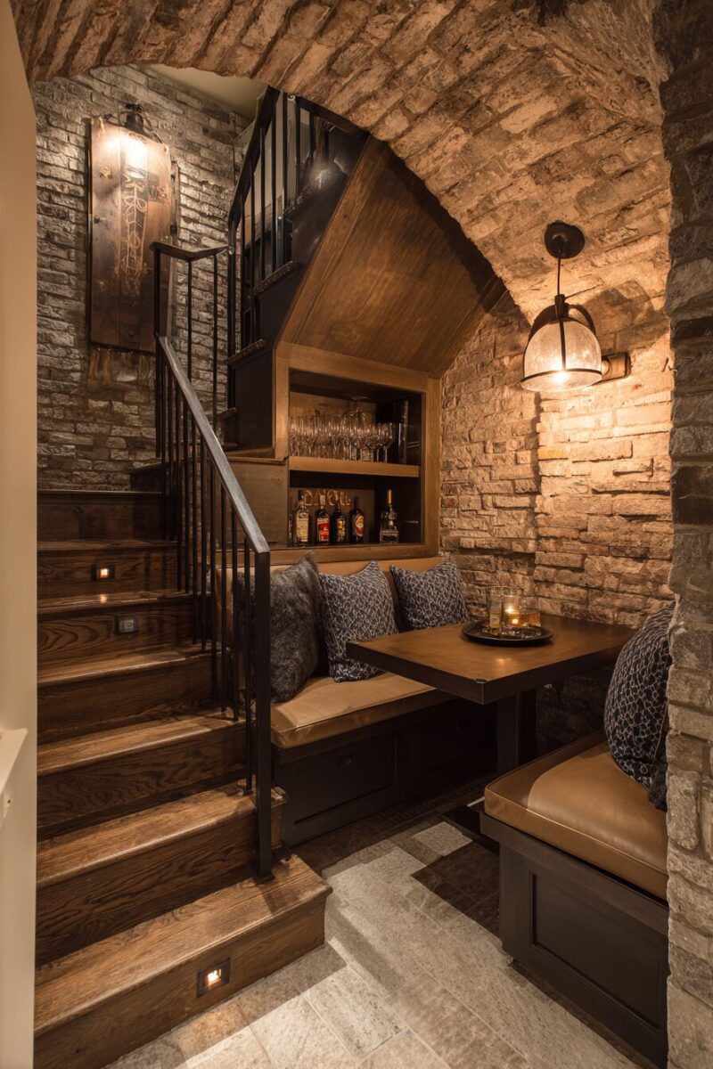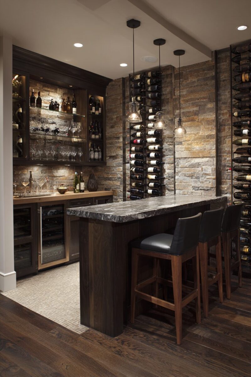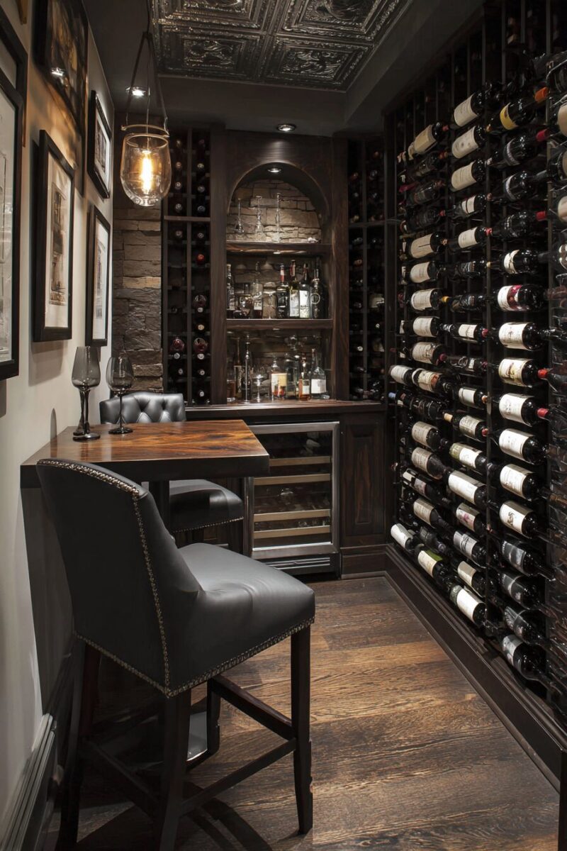 If your walls are standard drywall, adding stone veneer or reclaimed wood paneling creates that old-world wine cellar atmosphere.