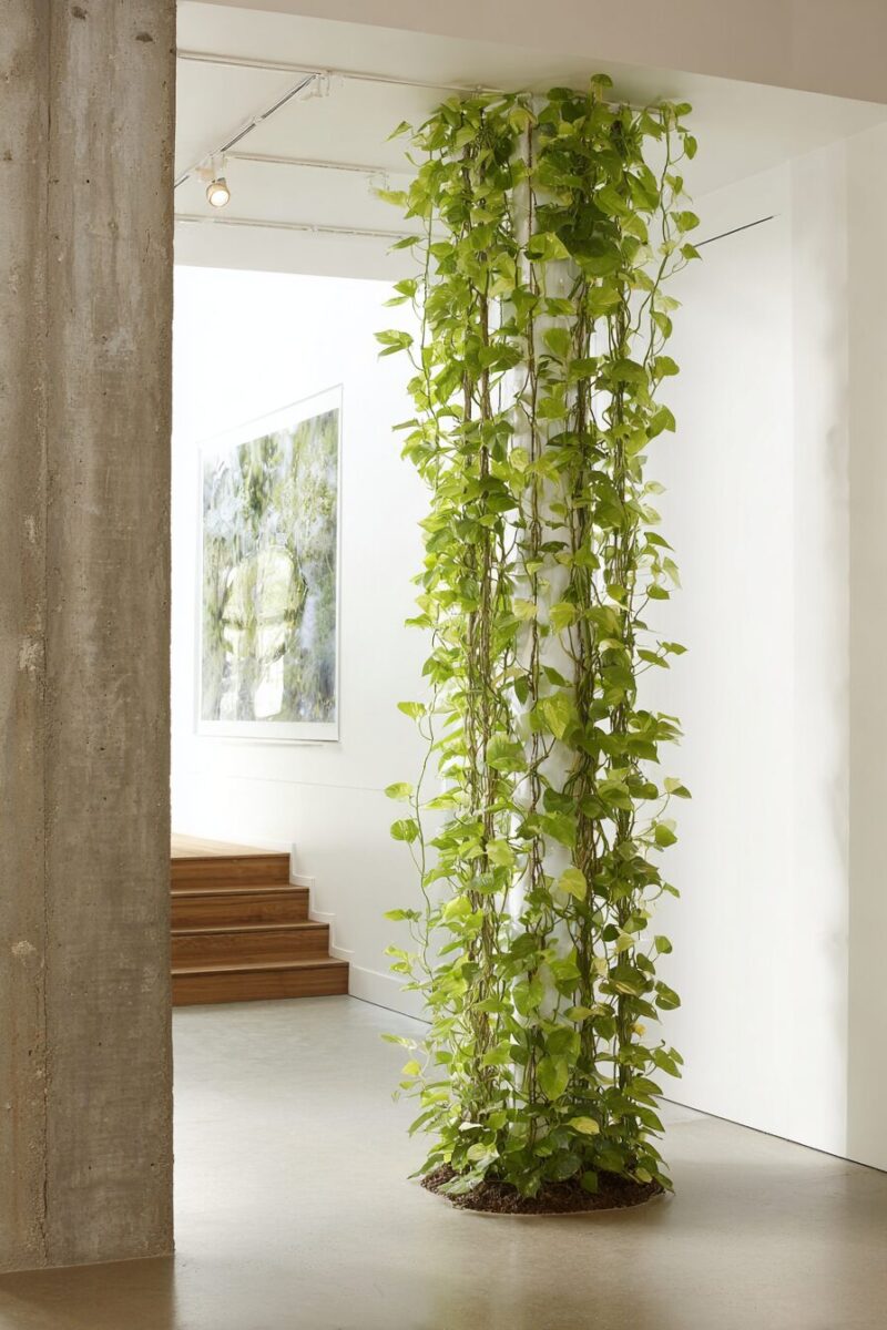 Transform your basement poles into living pillars by installing climbing plant systems that bring natural beauty and air purification to your underground space.