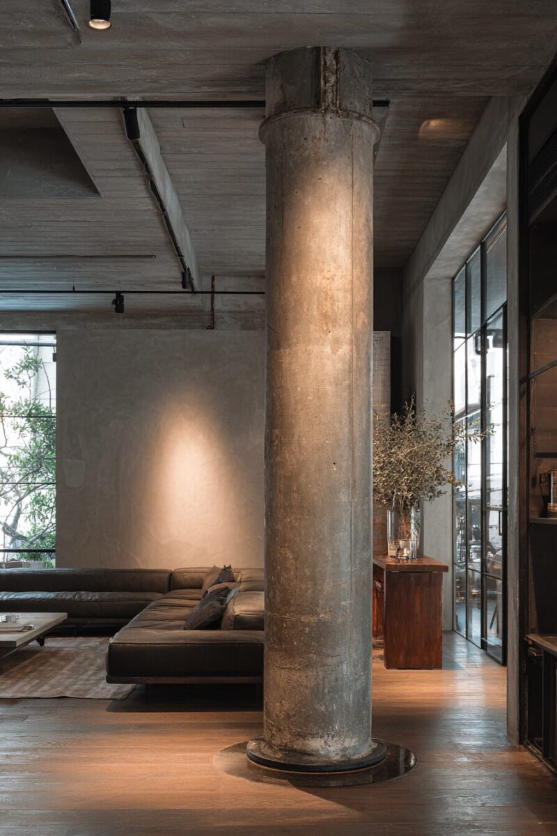 Give your basement poles an industrial makeover by wrapping them with PVC or metal pipes that create an authentic factory-inspired aesthetic.
