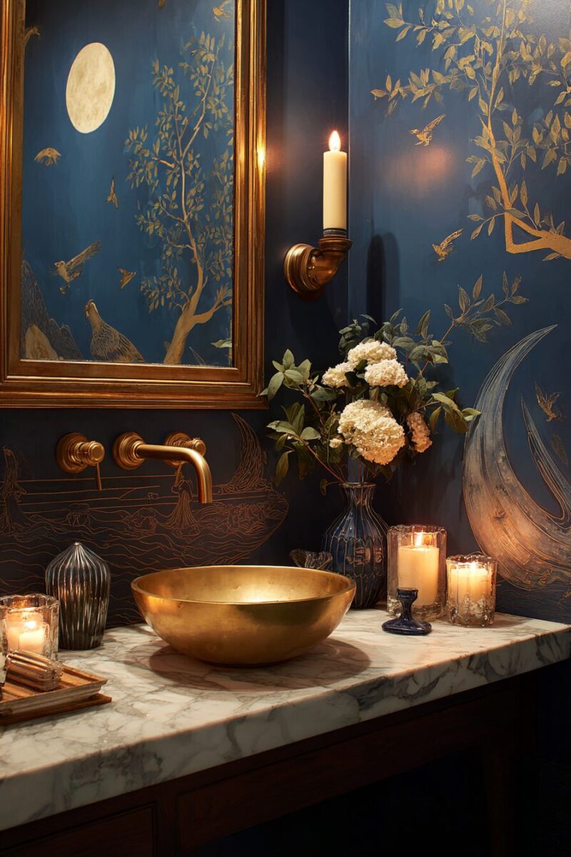 The scale of artwork matters in bathroom settings where space is typically limited – choose pieces that feel proportional to your counter size rather than overwhelming the area.