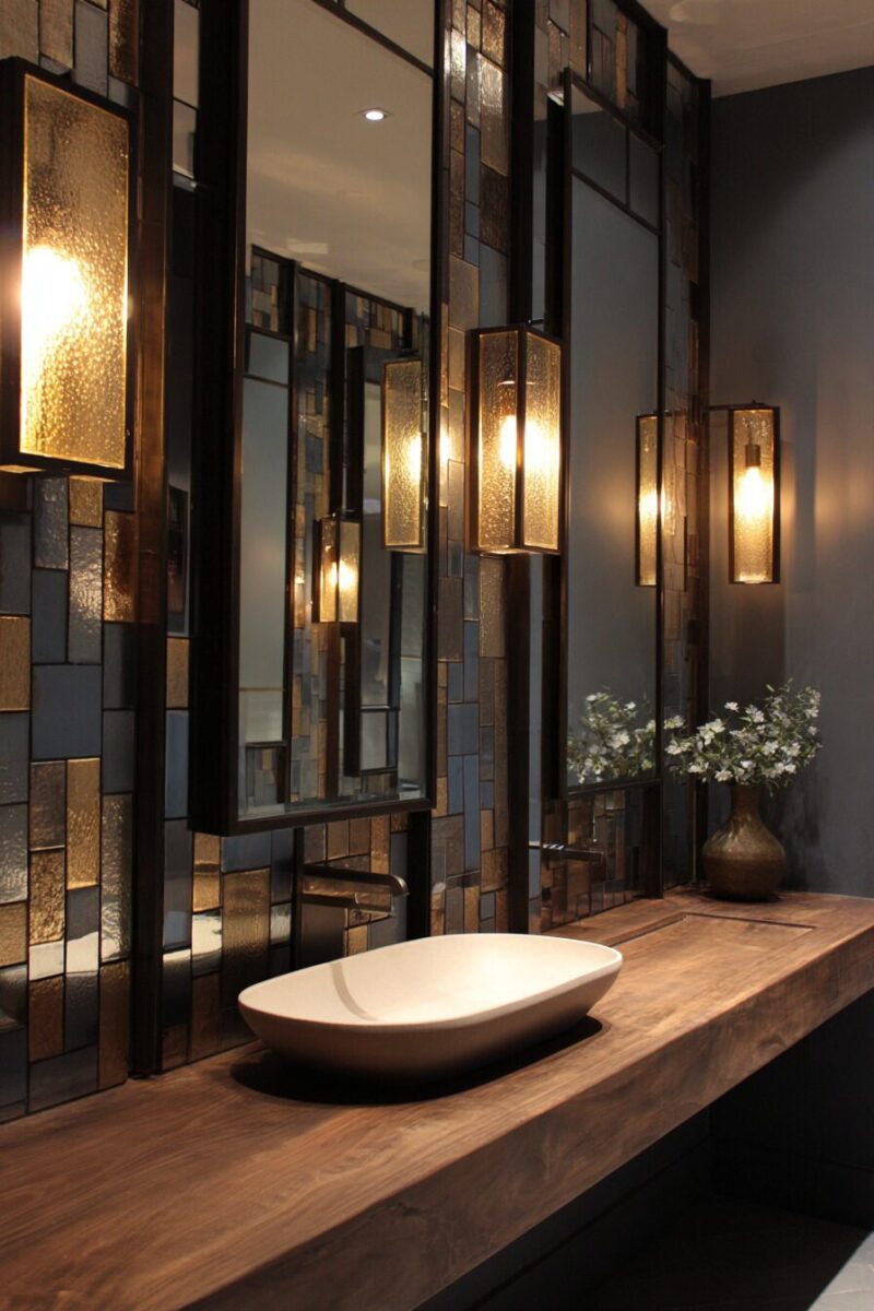 The reflection angles created by multiple mirrors bounce light throughout the space in ways that single mirrors cannot achieve, making even small bathrooms feel more open and airy.