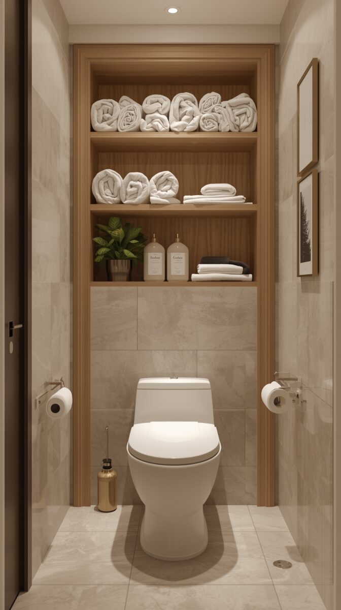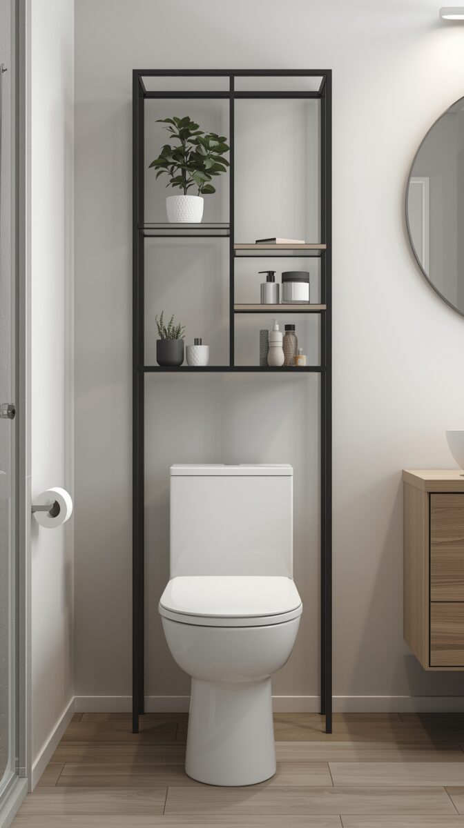 The behind-the-toilet space is small enough that you can experiment without it feeling overwhelming.