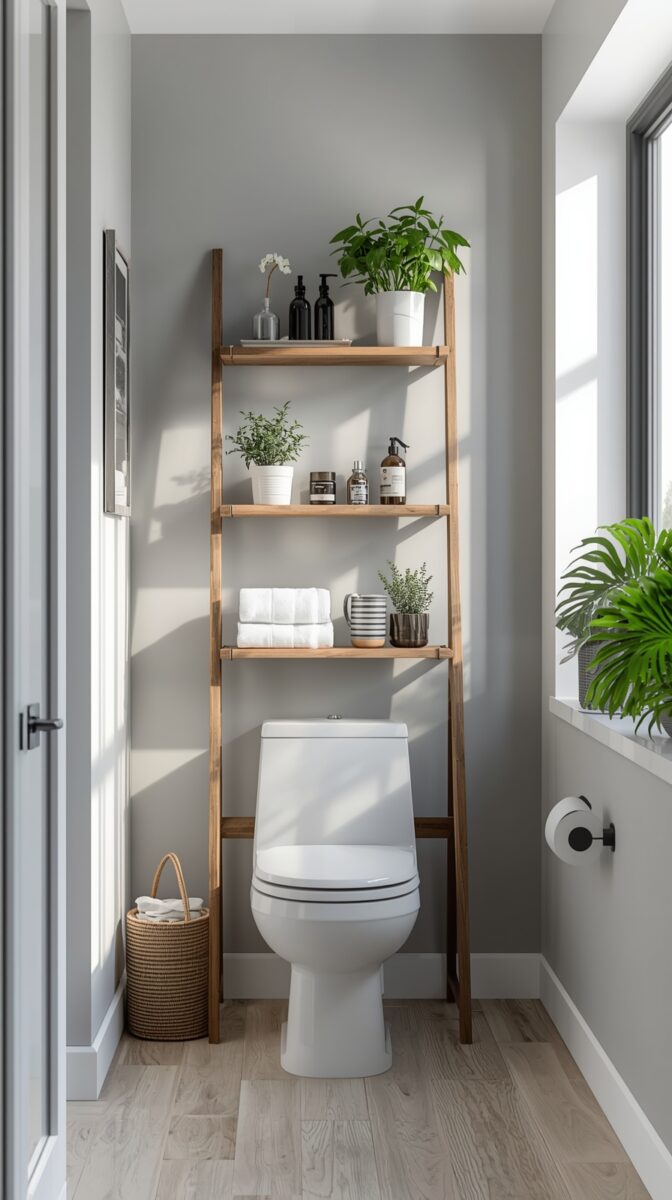 I leaned a decorative wooden ladder against the wall behind my toilet, and it’s both functional and gorgeous.