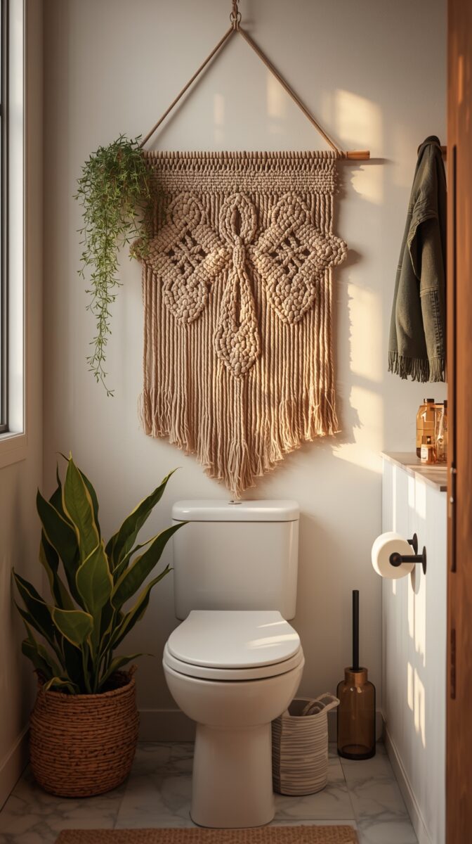 Just make sure the macrame isn’t touching the toilet tank or getting splashed.