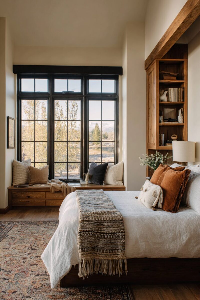 These architectural elements work particularly well in bedrooms with scenic views of mountains, prairies, or other landscapes that embody the western spirit.
