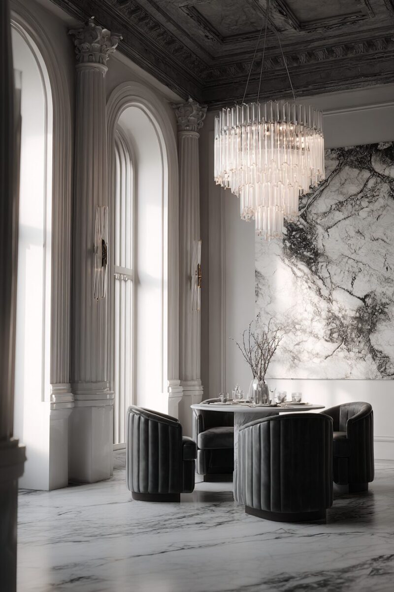 Keep the color palette tight: black, white, and a pop of one metallic like silver or gold.