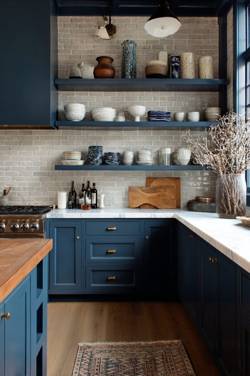 You’ll discover that this bold blue choice actually makes your kitchen feel more sophisticated and intentionally designed rather than overwhelming or too colorful.