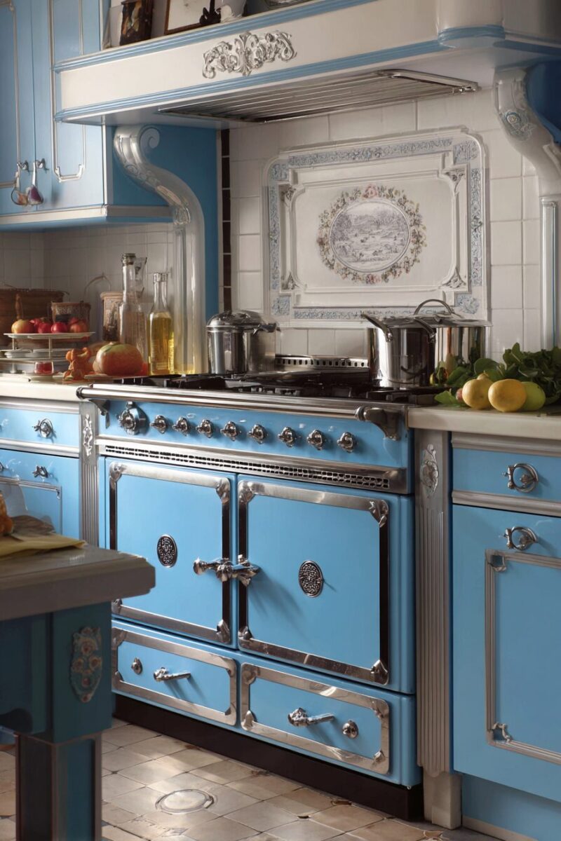 You’ll love how a vintage-style range in blue creates an instant connection to traditional French cooking methods while offering all the modern conveniences you expect from contemporary appliances.