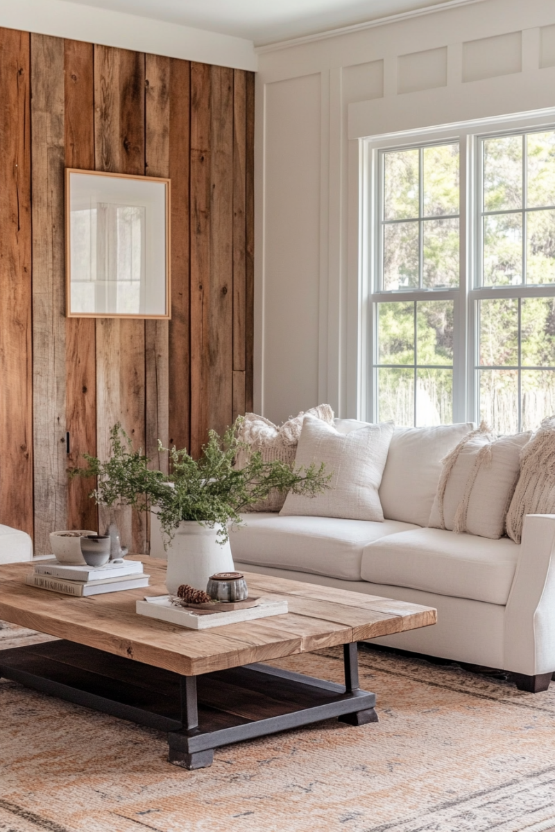 This idea brings warmth and texture to any space, making it perfect for homes with farmhouse or cabin-inspired decor.