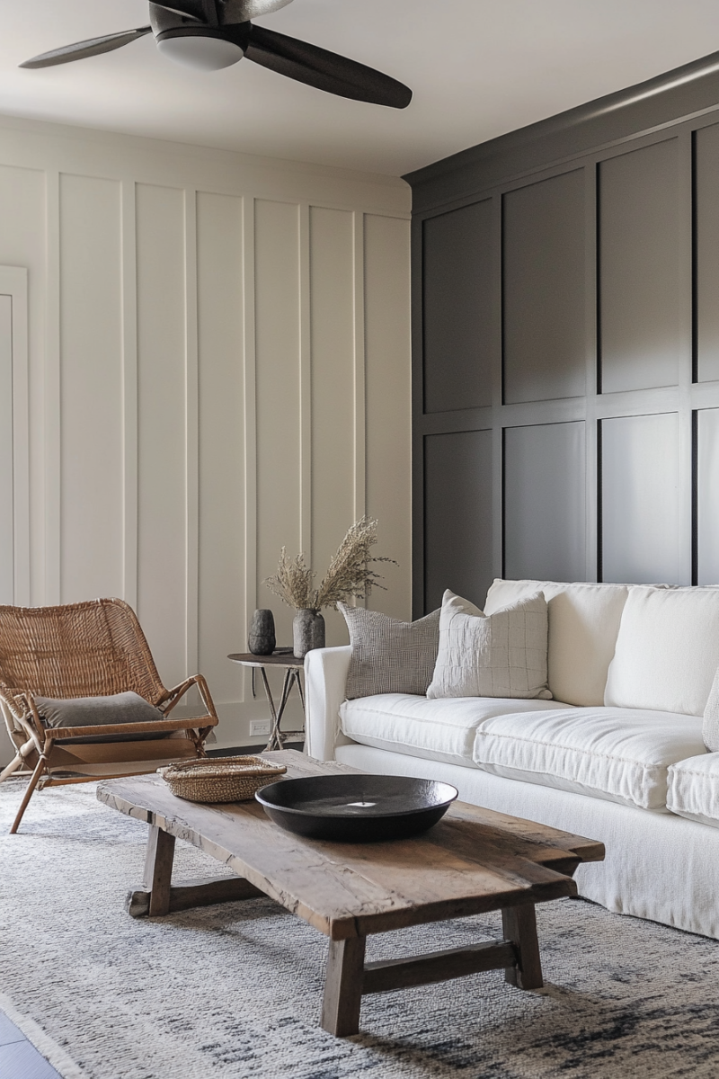 If you’re looking for a way to make your board-and-batten wall stand out, consider a two-tone color scheme.
