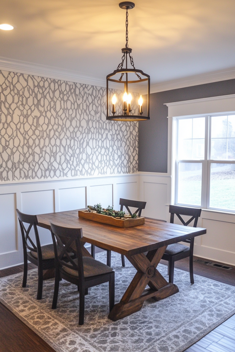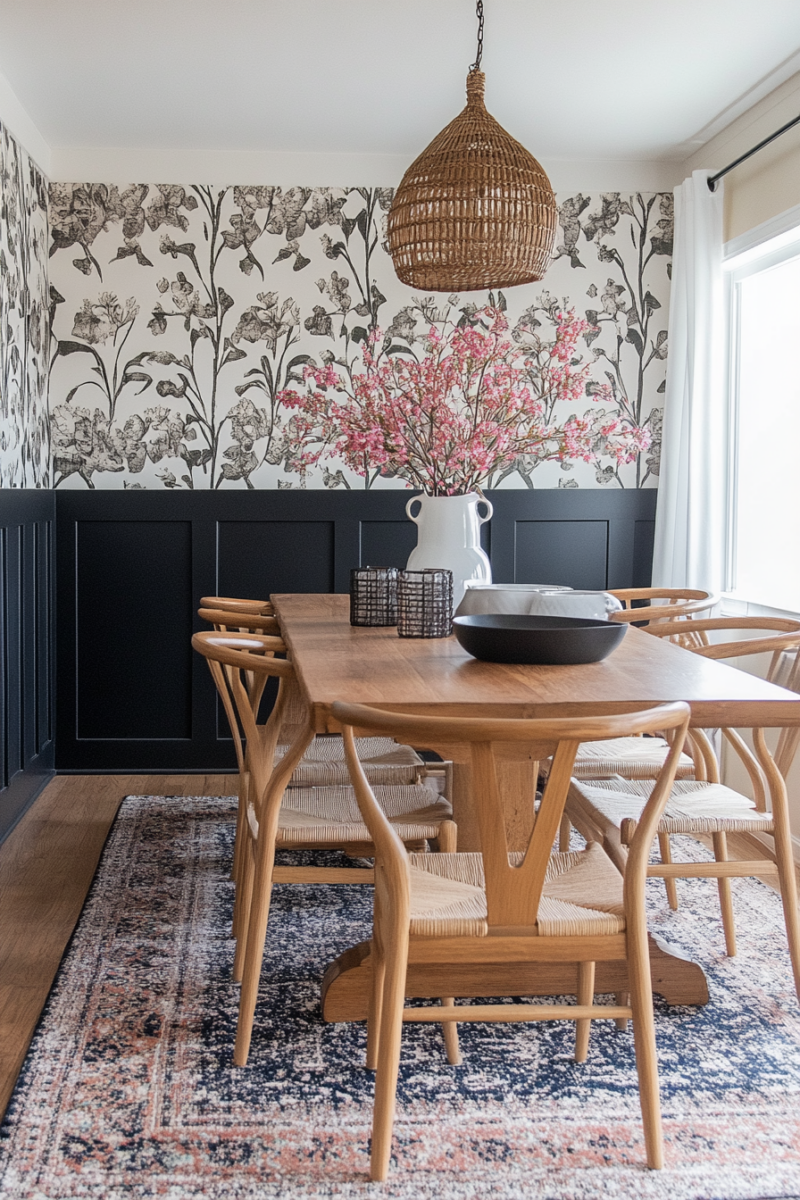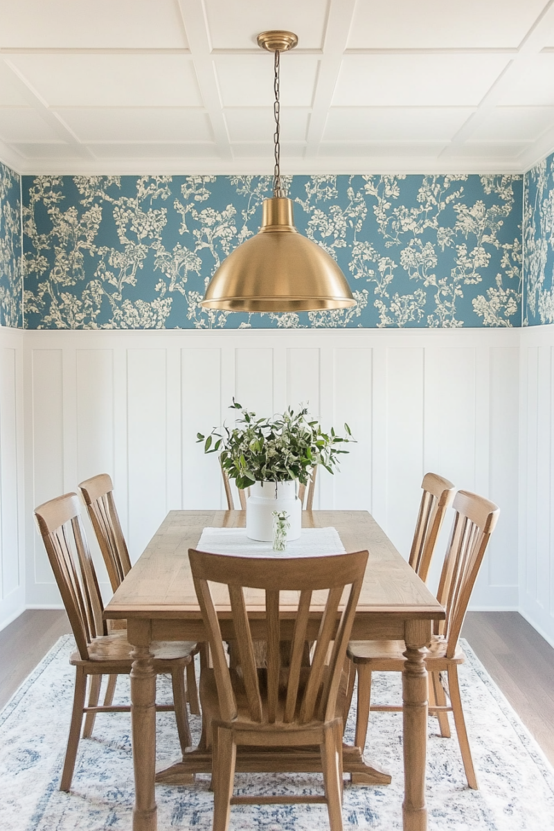 For example, try pairing a white board-and-batten half-wall with floral wallpaper above for a vintage-inspired look.