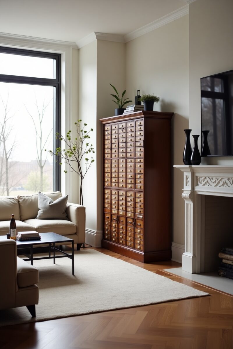 Card catalogs typically feature brass hardware and pulls that develop a beautiful patina over time, adding to their character and visual appeal.