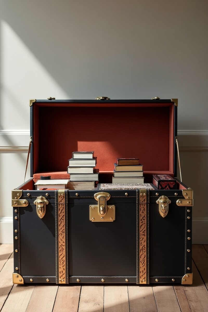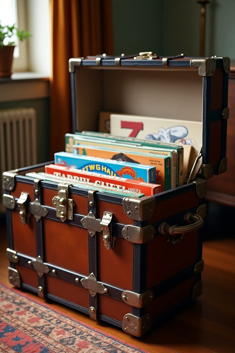 The natural compartmentalization of vintage trunks works perfectly for separating different types of games or creating dedicated spaces for accessories like dice, card sleeves, and rule books.