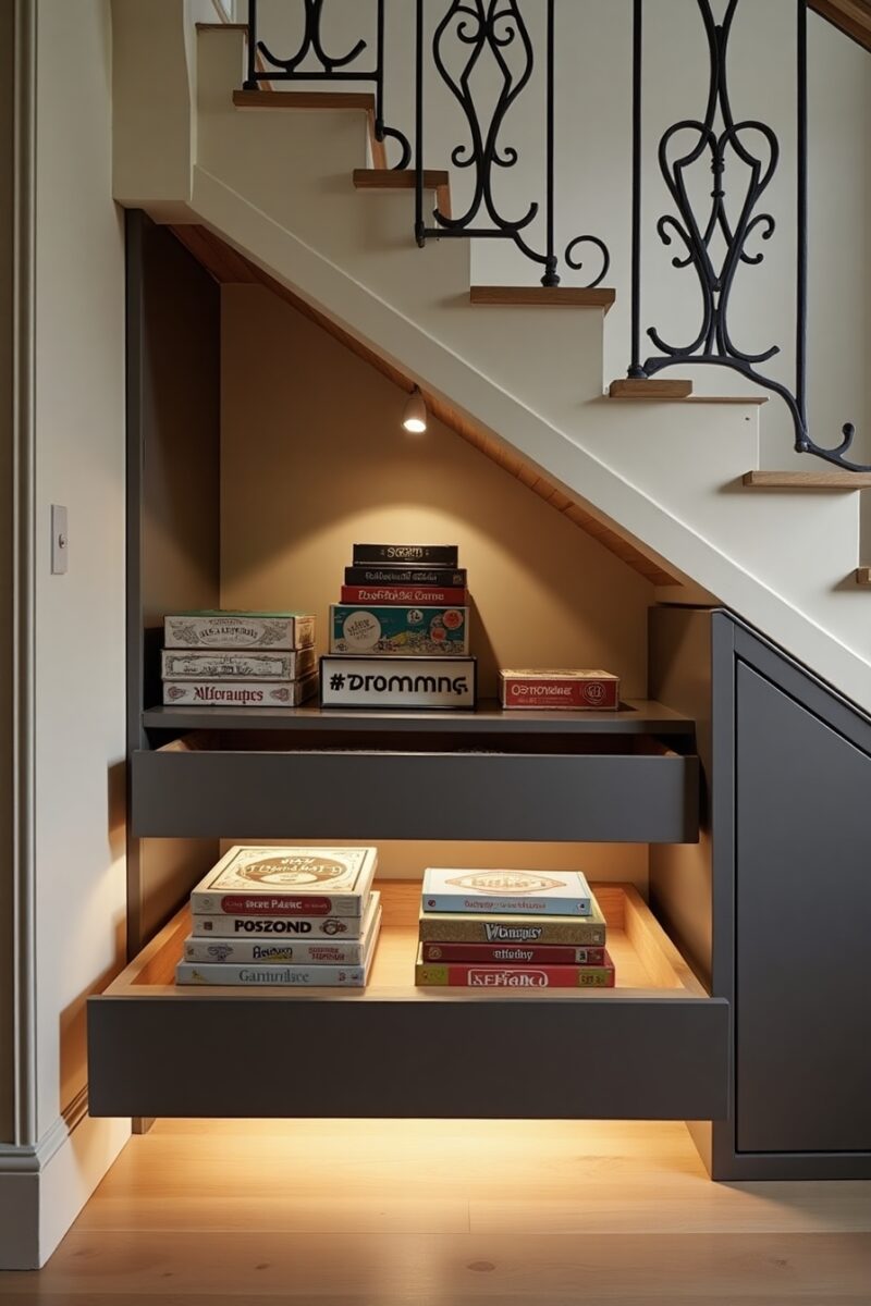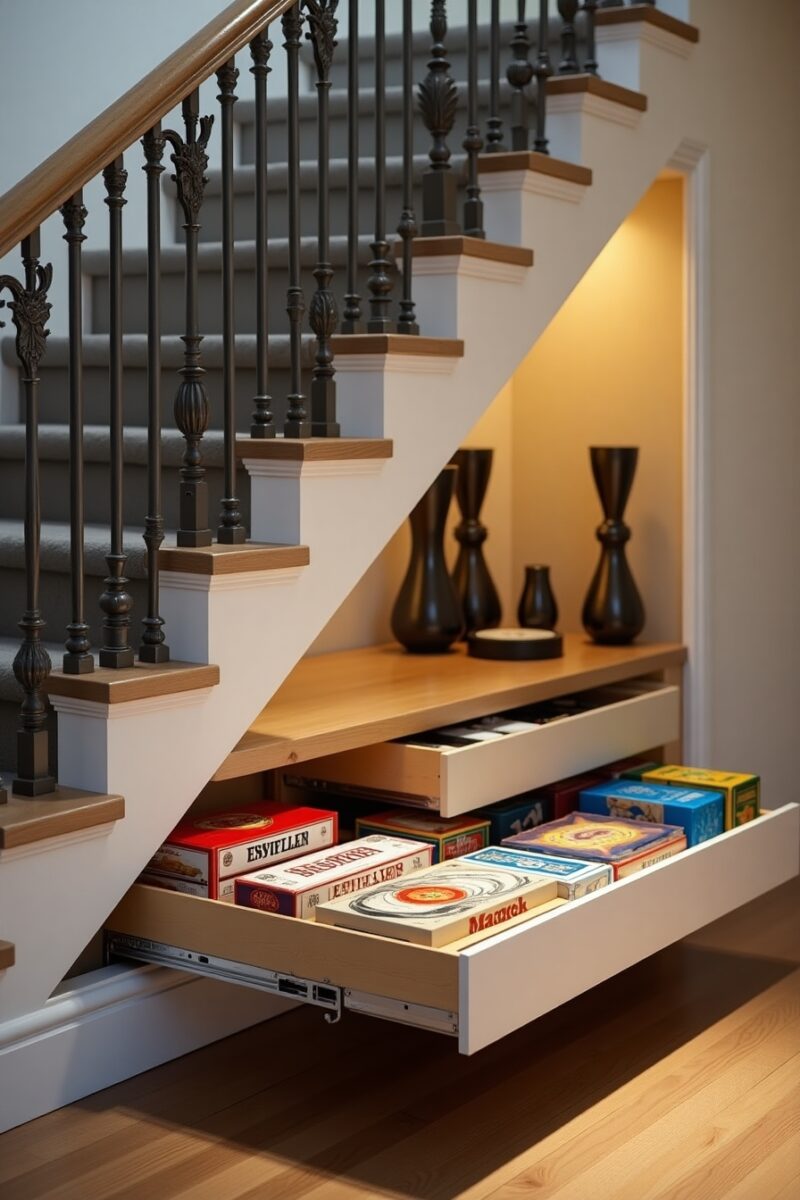 Transform that awkward under-stairs space into a board game lover’s dream with custom pull-out drawers that maximize every inch of this typically wasted area.