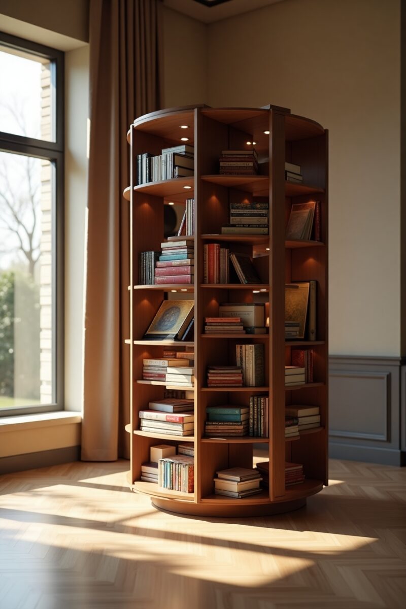 The circular design maximizes corner space efficiency where traditional rectangular shelving would leave wasted areas.