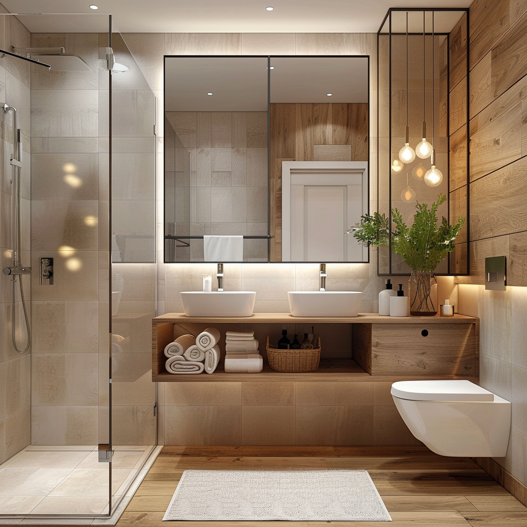 Wood instantly warms up bathrooms with its rich grains and varied tones.