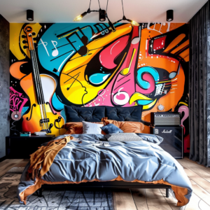 Let that artistic painted backdrop set the tone for a bedroom that’s energetic, expressive and unapologetically you.