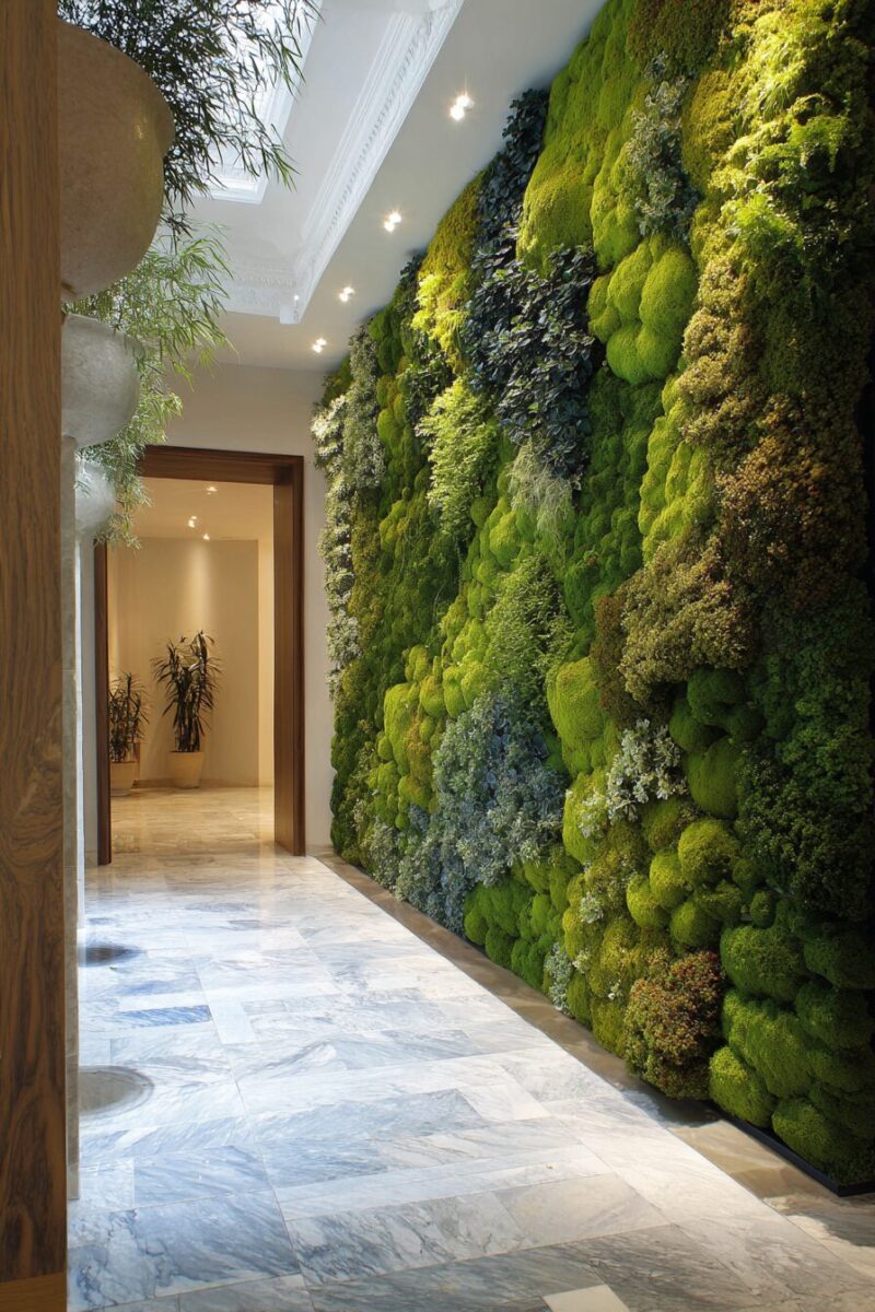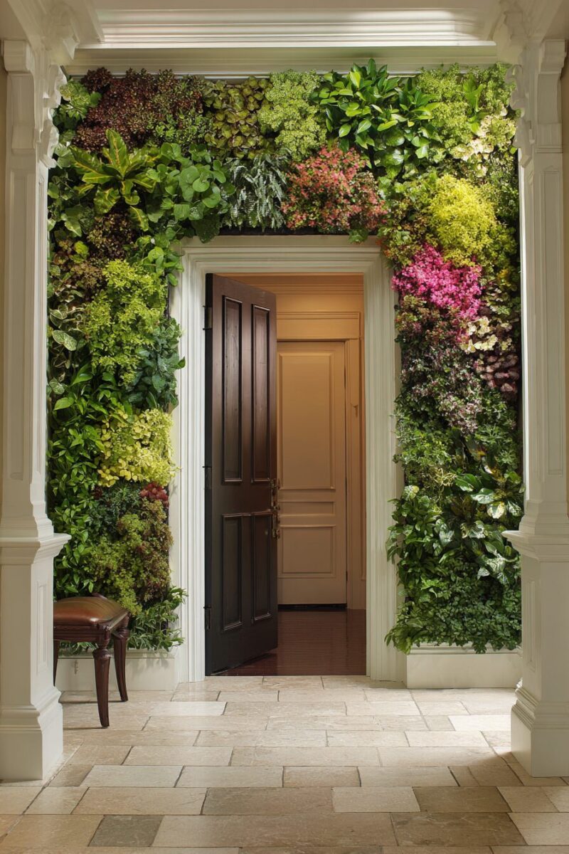 A vertical garden wall transforms your entryway into an Instagram-worthy botanical paradise that changes with the seasons.