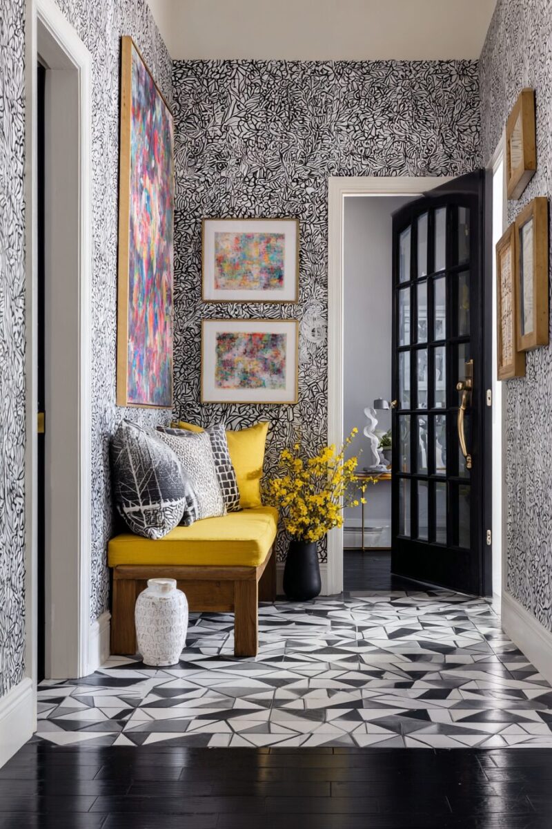 A single accent wall covered in a dramatic pattern can completely transform your entryway from bland to breathtaking.