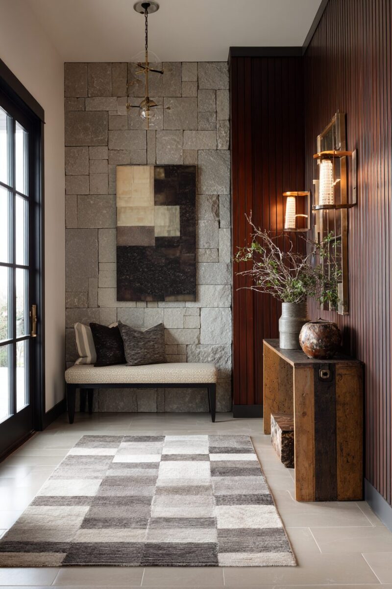 The most interesting entryways layer different materials and textures to create rich, complex visual experiences.