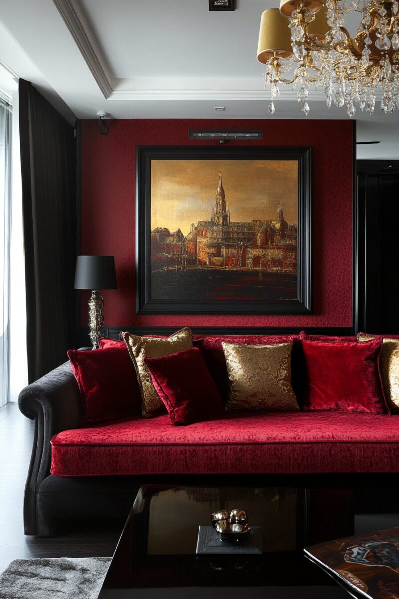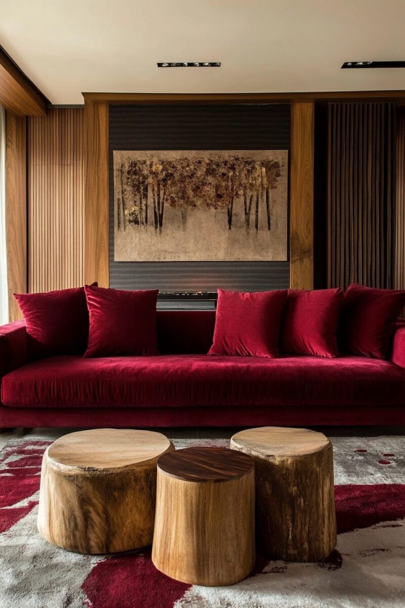 Nothing says luxury quite like burgundy velvet, creating a living room that practically begs to be touched and experienced.
