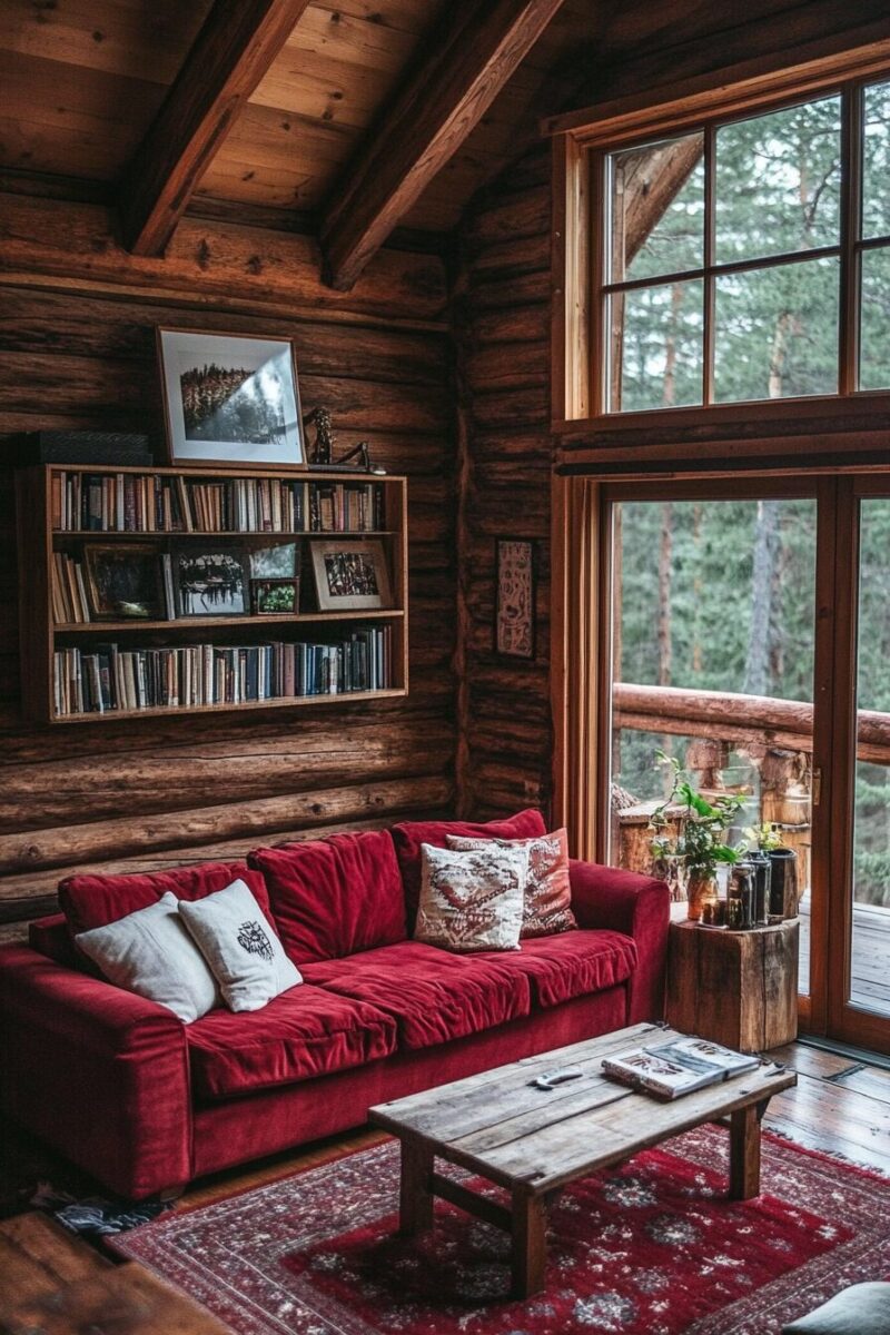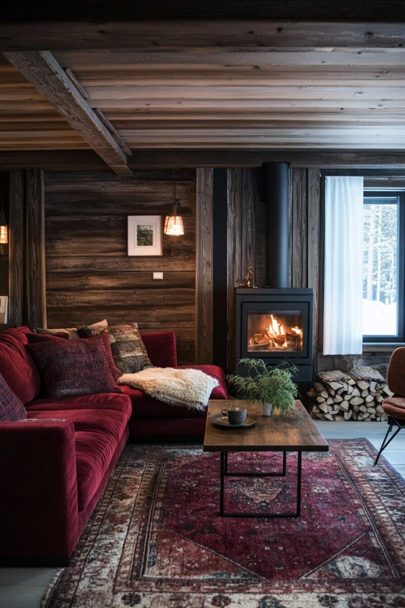 Burgundy finds a natural home in rustic design schemes, where it brings warmth and richness to spaces inspired by cabin and lodge aesthetics.