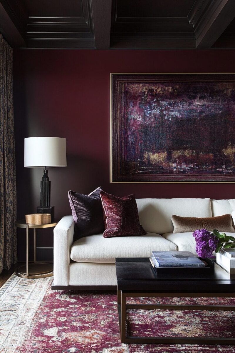 The beauty of this approach is its flexibility – you can easily change intensity or even seasonally adjust how much burgundy appears in your living space.